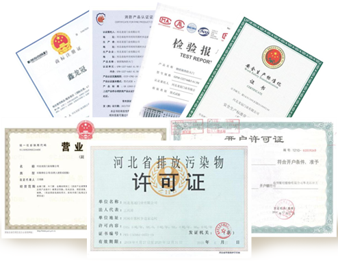 各項檢測報告、安全生產標準化證書、科技型中小企業證書等